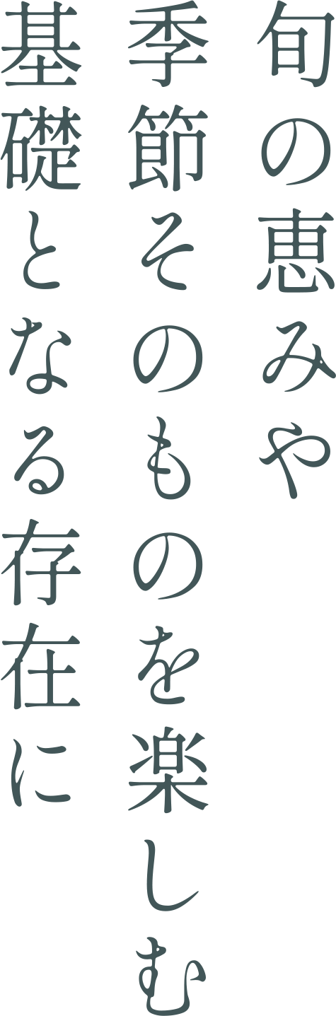 We make dishes that bring out the tastes of the changing seasons and create enjoyment in the abundance of nature.